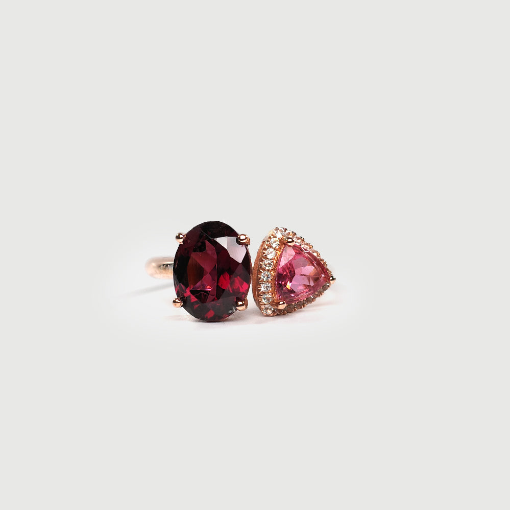 Garnet and Tourmaline Toi et Moi Ring