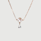 This Akoya pearl necklace features a single lustrous pearl with a delicate pinkish sheen, elegantly set in rose gold. The warm tones of the setting beautifully enhance the pearl's natural blush, creating a timeless and refined design.