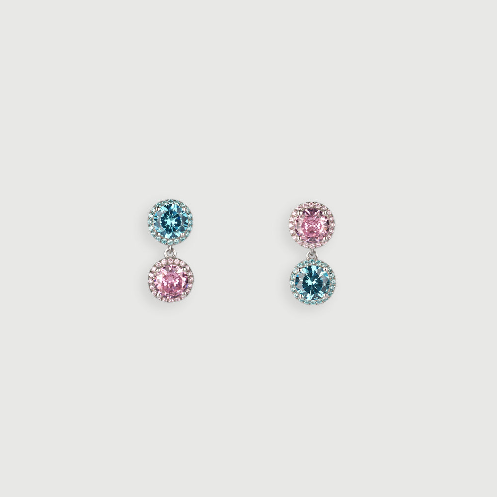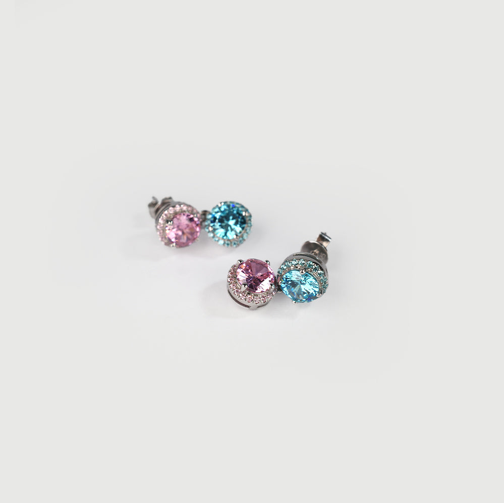 4 Round Cut Cubic Zirconia - Blue/Pink Color