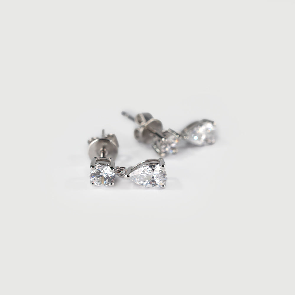 A classic and timeless design featuring a harmonious pairing of a round and pear-shaped stone.