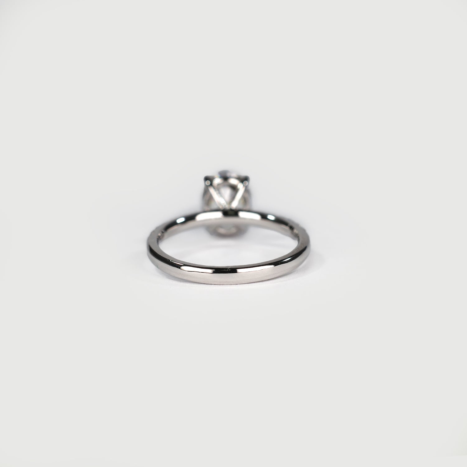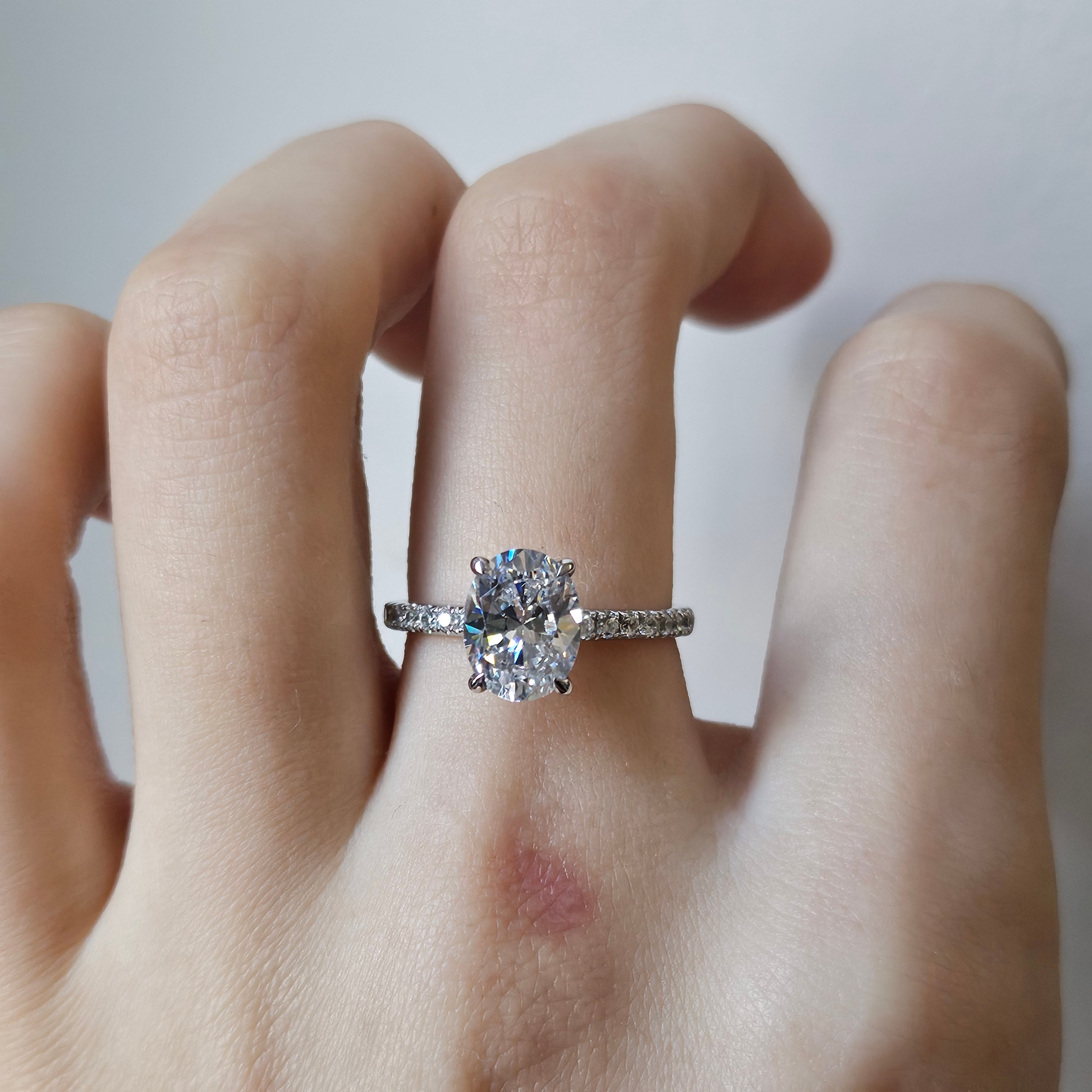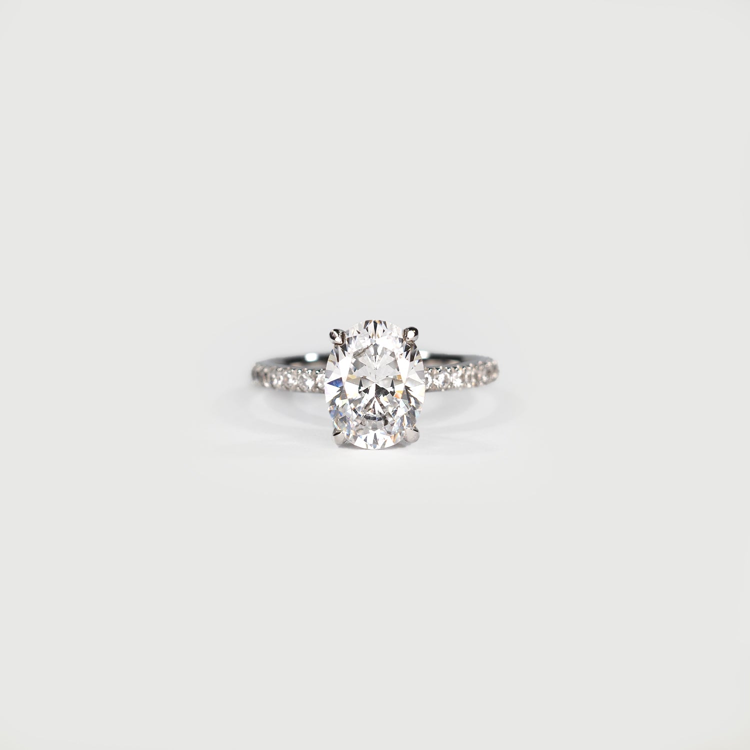 This timeless ring features a stunning oval stone as its centerpiece, complemented by a delicate pavé band that adds a touch of brilliance. Its classic design makes it effortlessly versatile, perfect for enhancing any outfit or occasion with understated elegance.