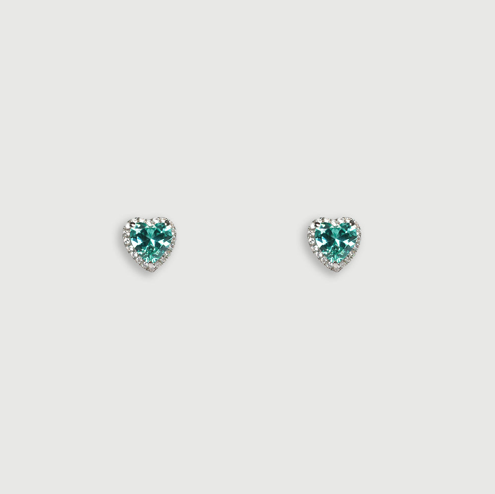 光環心形耳環 - 藍綠色