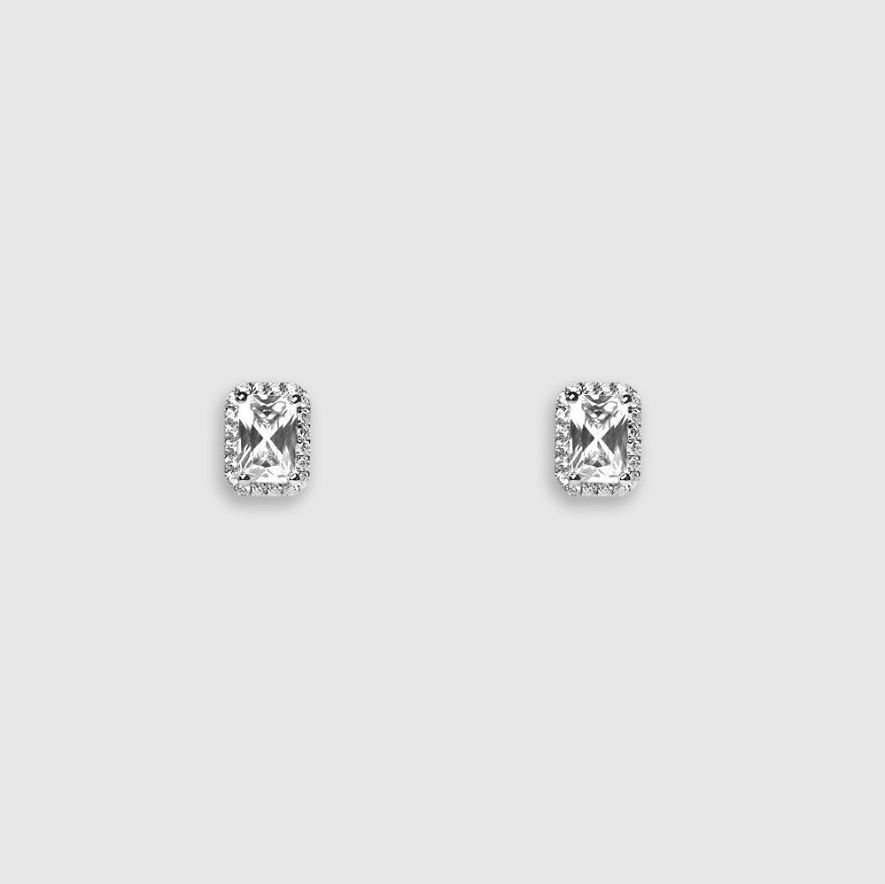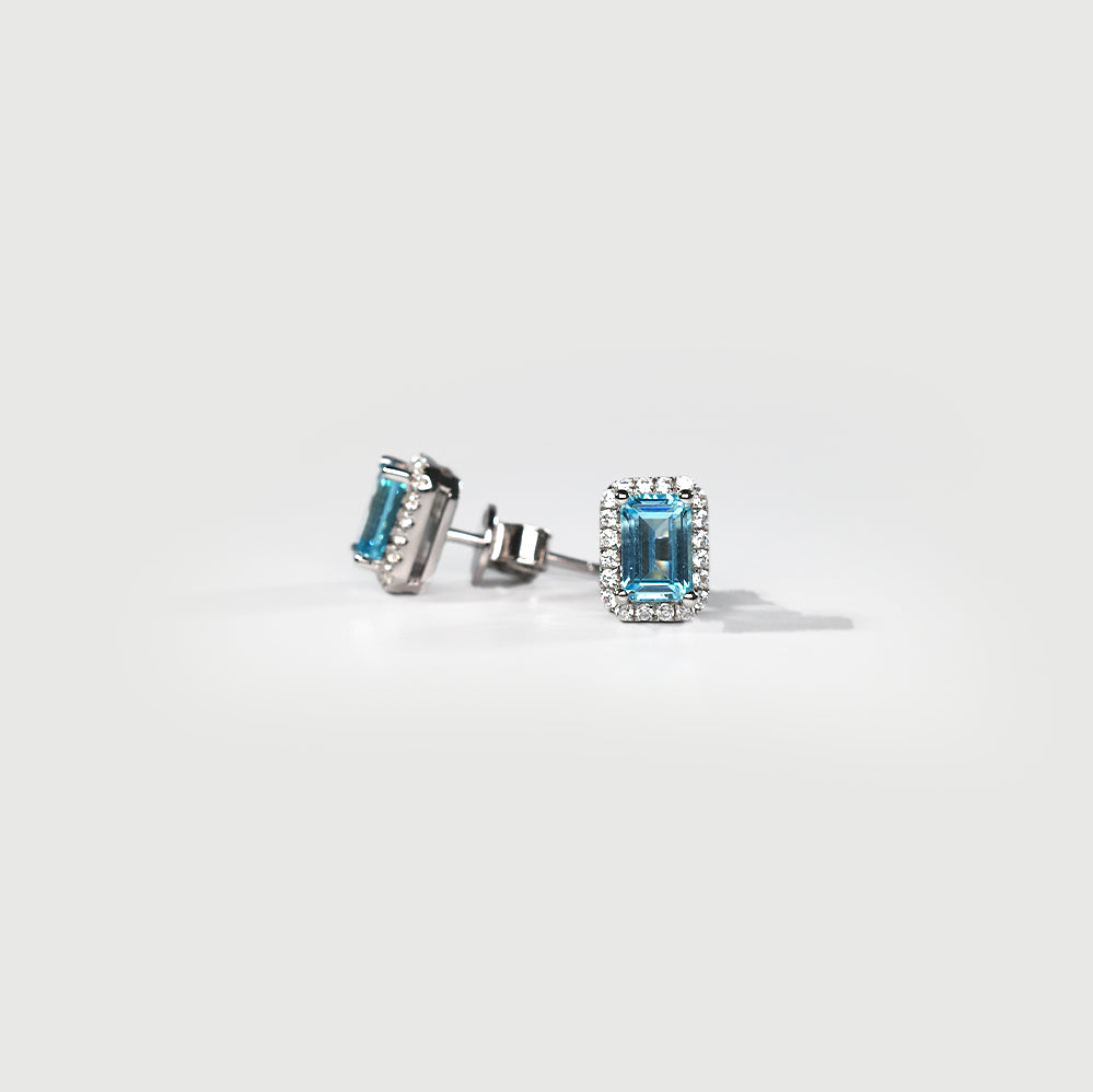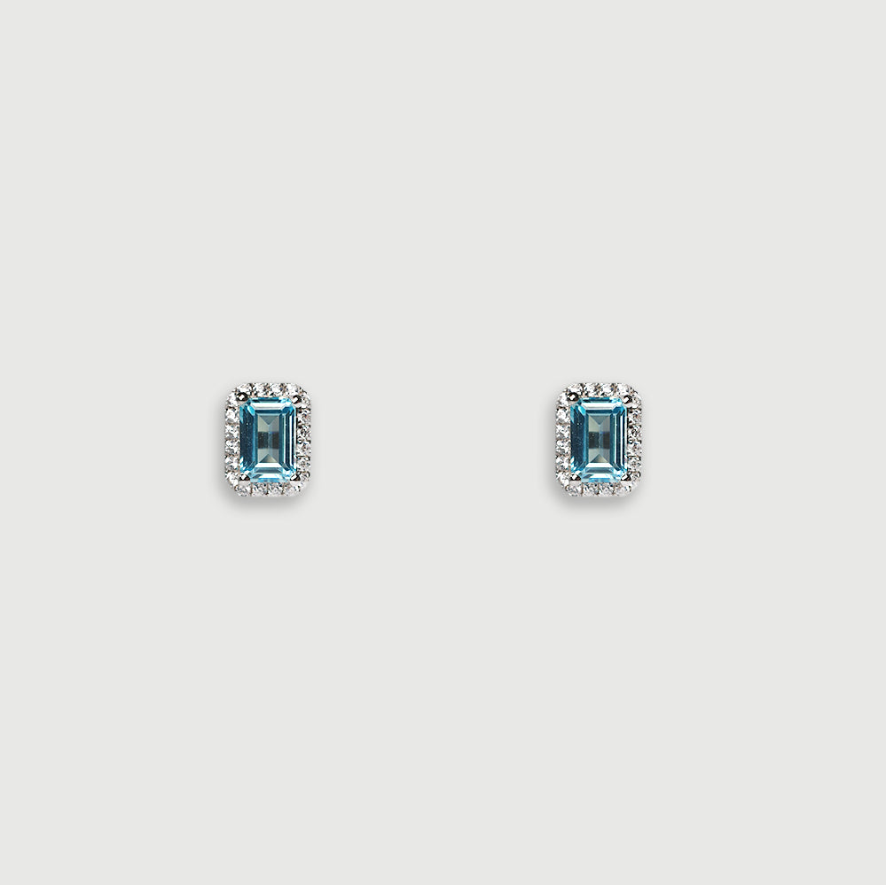 光環方形切割耳環 - 海藍寶石藍